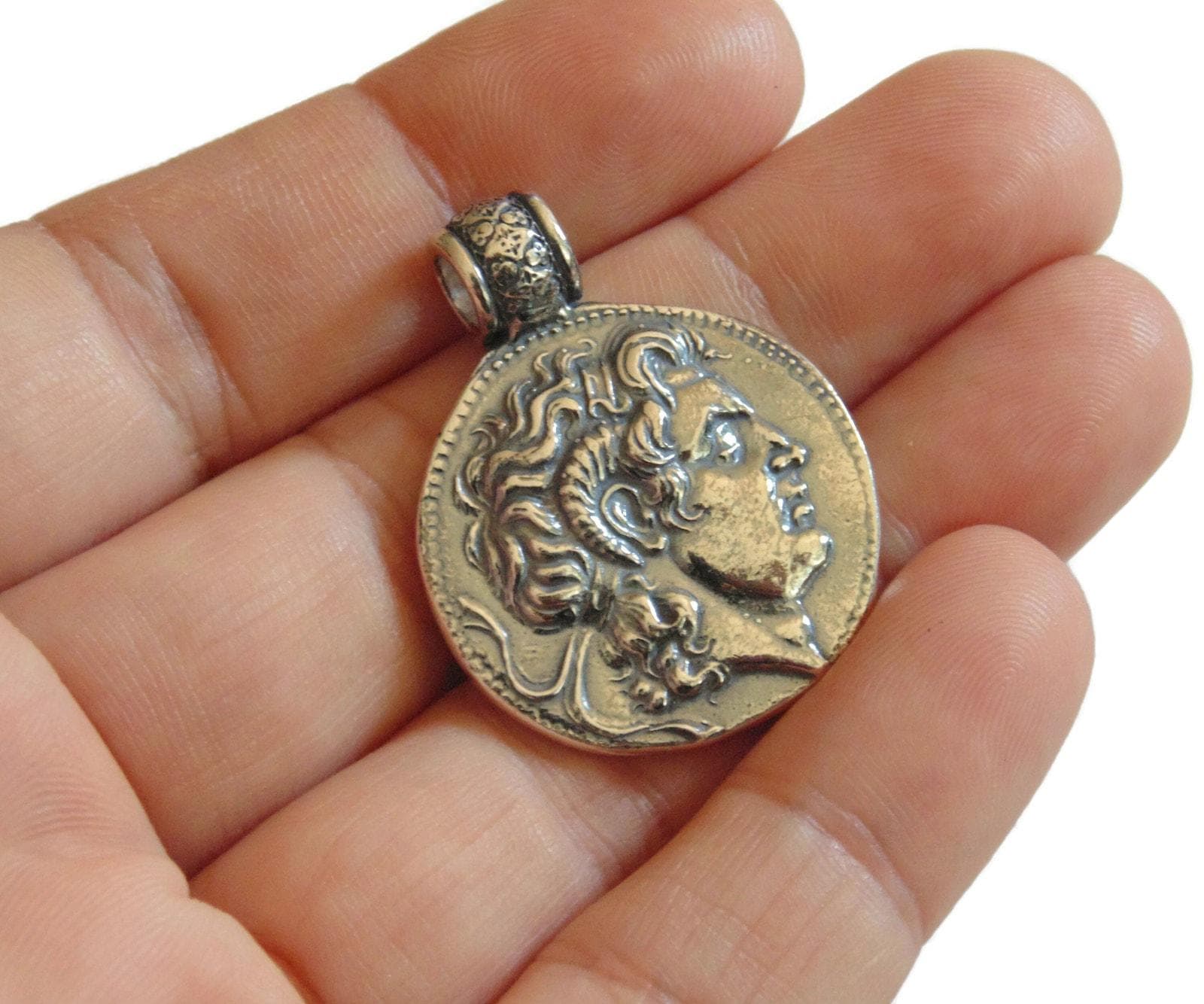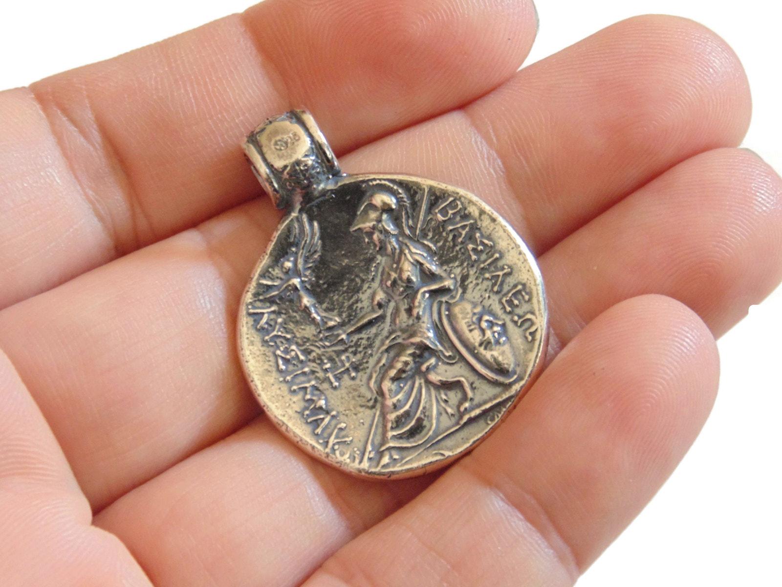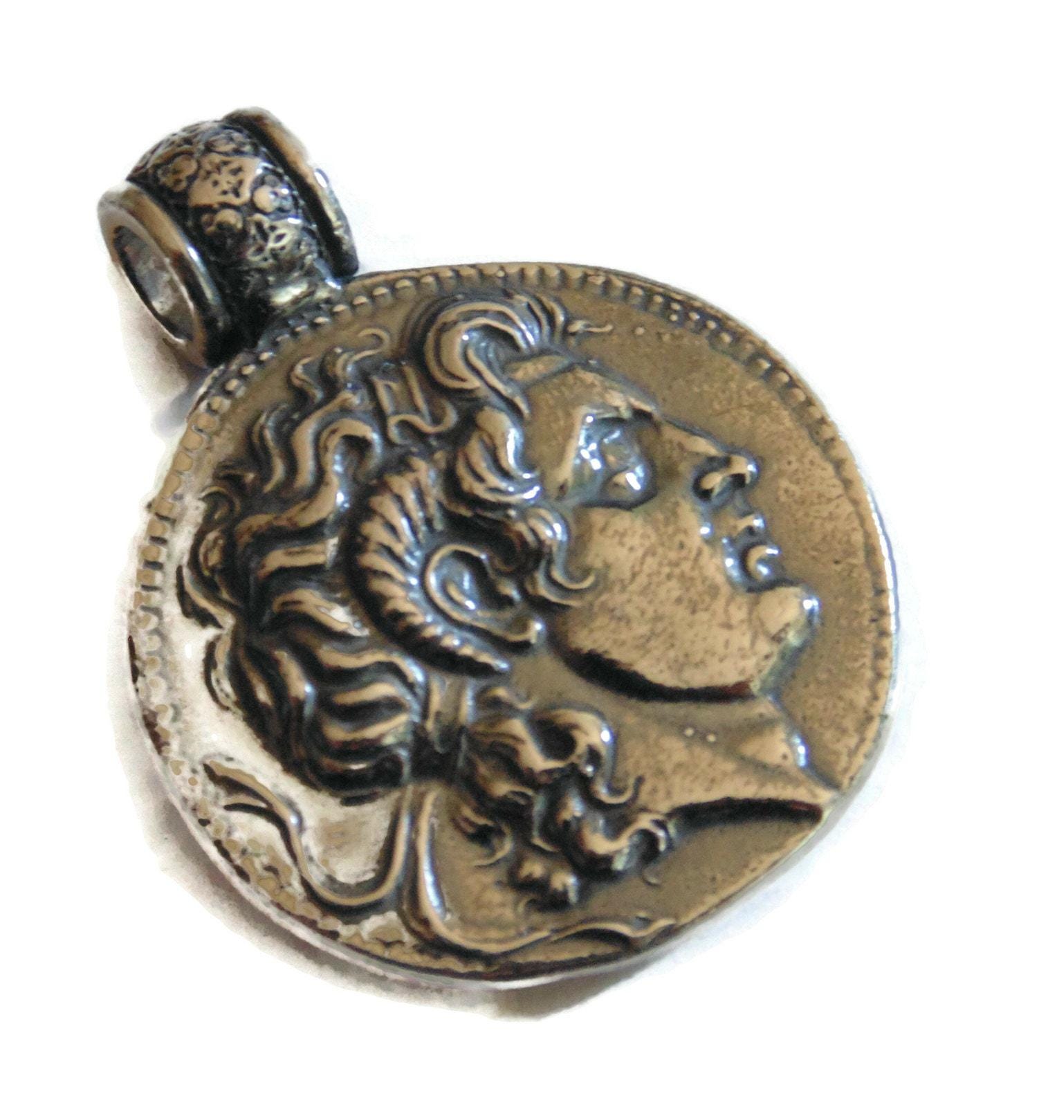 Type: Amazing Large Artisan Copy of an Ancient Greek Coin with Alexander The Great Medal Medallion Pendant
