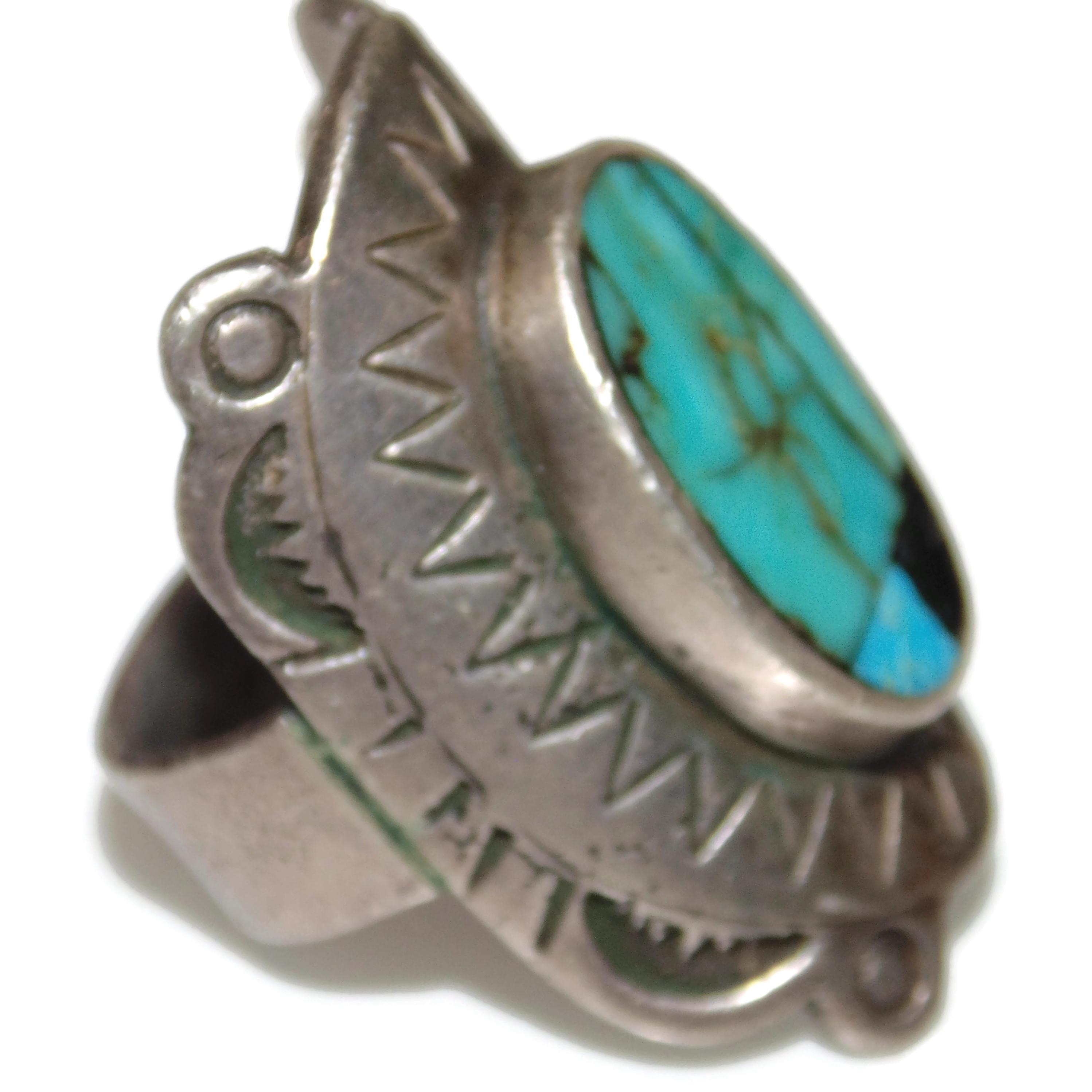 Type: Vintage Estate Signet Statement Large Blue Turquoise Stone Ring